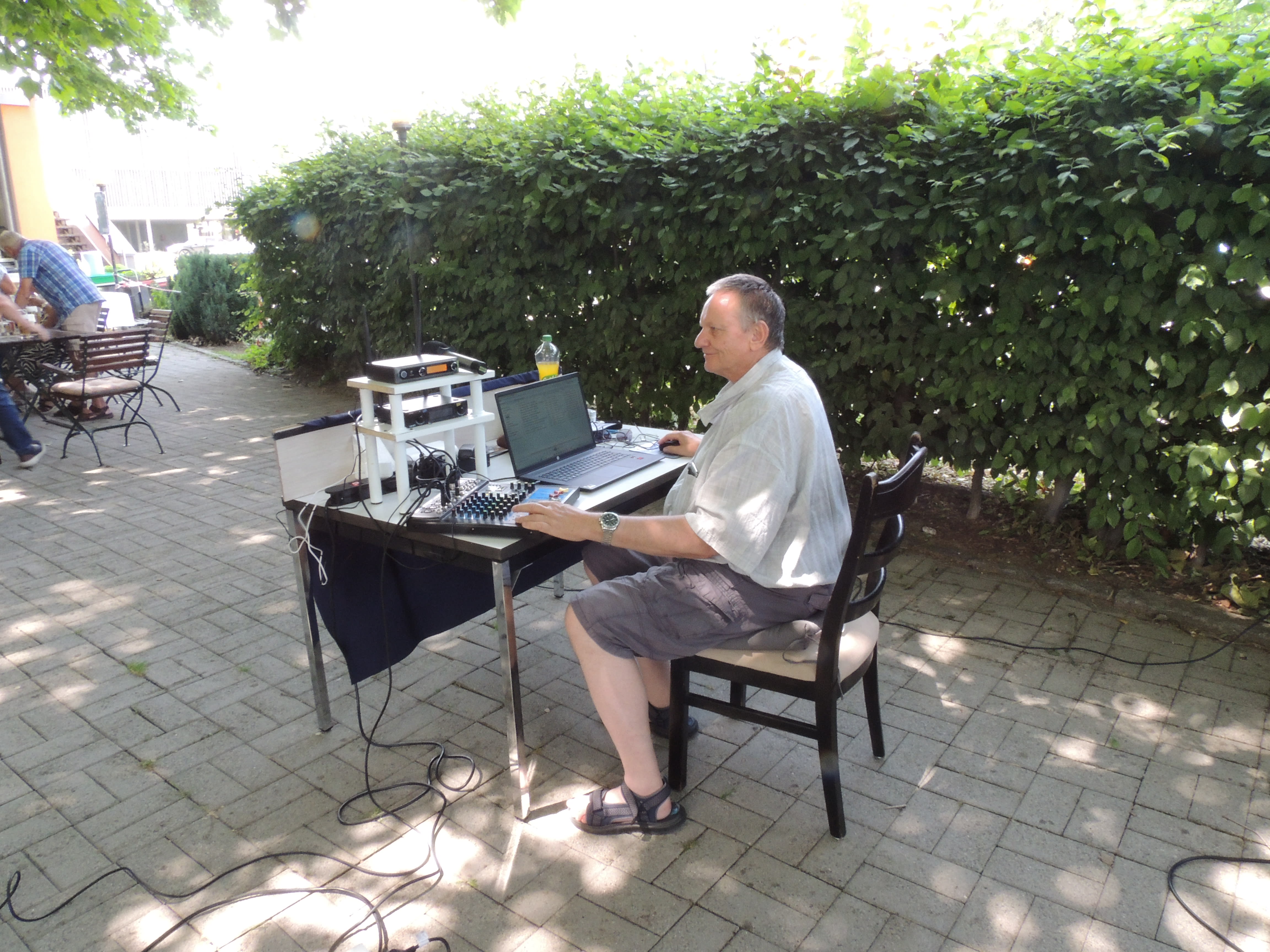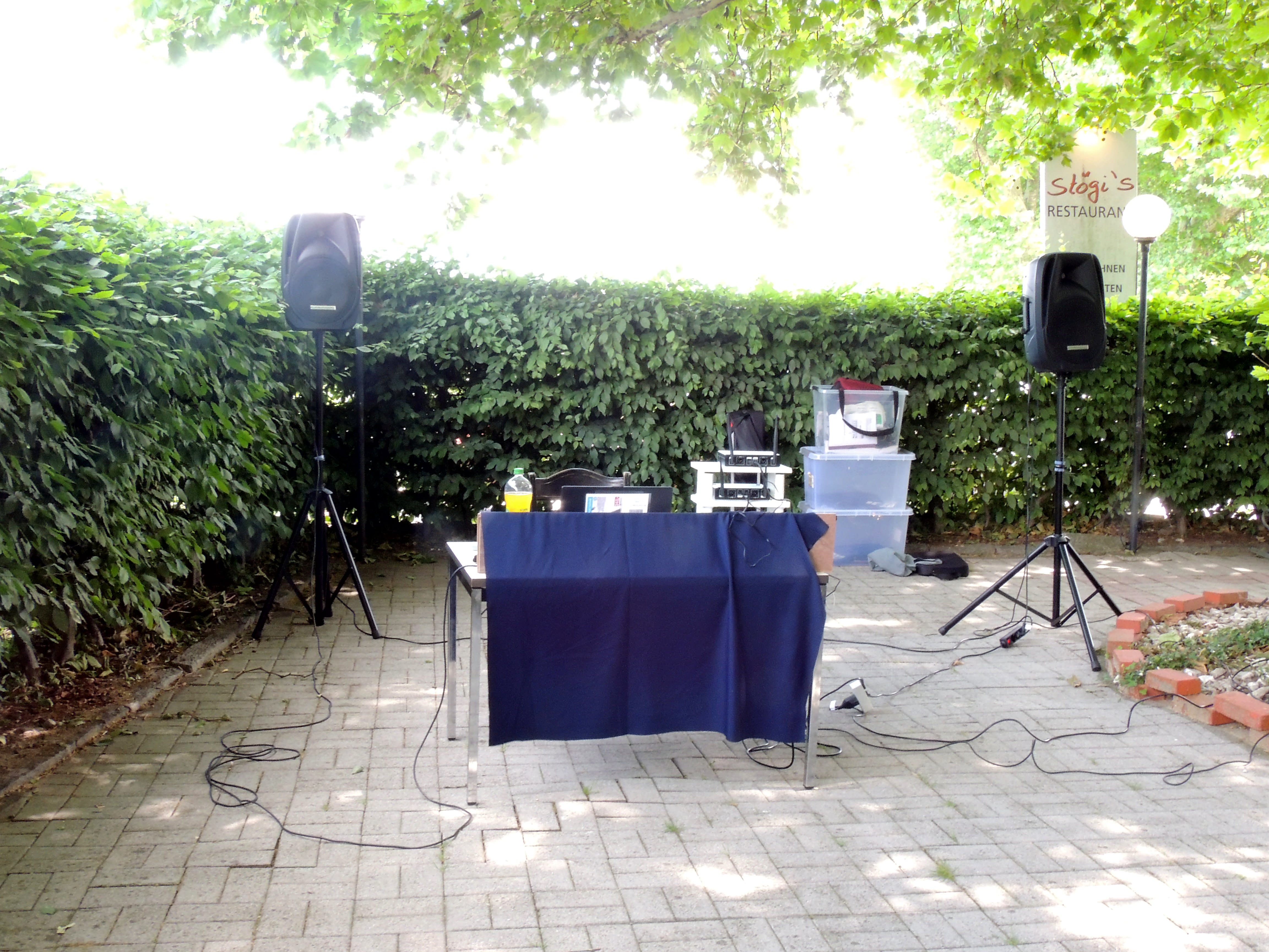 Mein professionelles Equipment beseht aus: Mischpult, Aktivboxen, 7 Funkmikrofonen, sowie 7 Kabelgebundene Mikrofone, Beamer / große Leinwand und Laptop.
