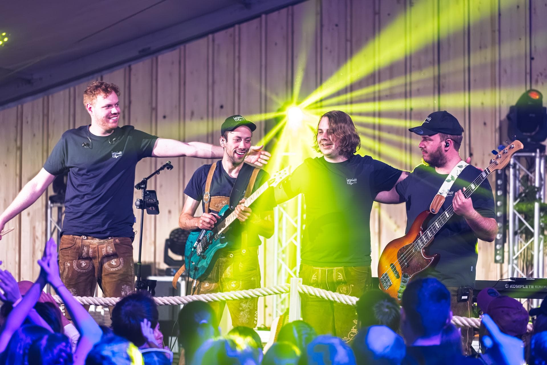 Damit hond sich im Ländle unter acht Instrumenten vier Musiker us zwoa Bergdörfer mit oanar Leidenschaft vereint. Dia Leidenschaft führt ned nur zu spürbarem Spaß uf da Bühne, sondern oh zu Wechsel an da Instrumente. Dia bruchts oh, um da enorma Bandbreite an Musikgenres, dia igspielt interpretiert, gerecht zum wörra. Vo Coldplay zu da Fäaschtbänkler, vo Avici zu Mumford & Sons oder alta Scheiben, mir spielen alles was üs gfallt! Im Einsatz sind's Schlagzeug, die Akustik und E-Gitarre, a Klavier, zwoa Synthesizer, die Ukulele und natürlich der Bass. Somit isch eppas garantiert: Super Stimmung und a volle Tanzfläche! ;)
