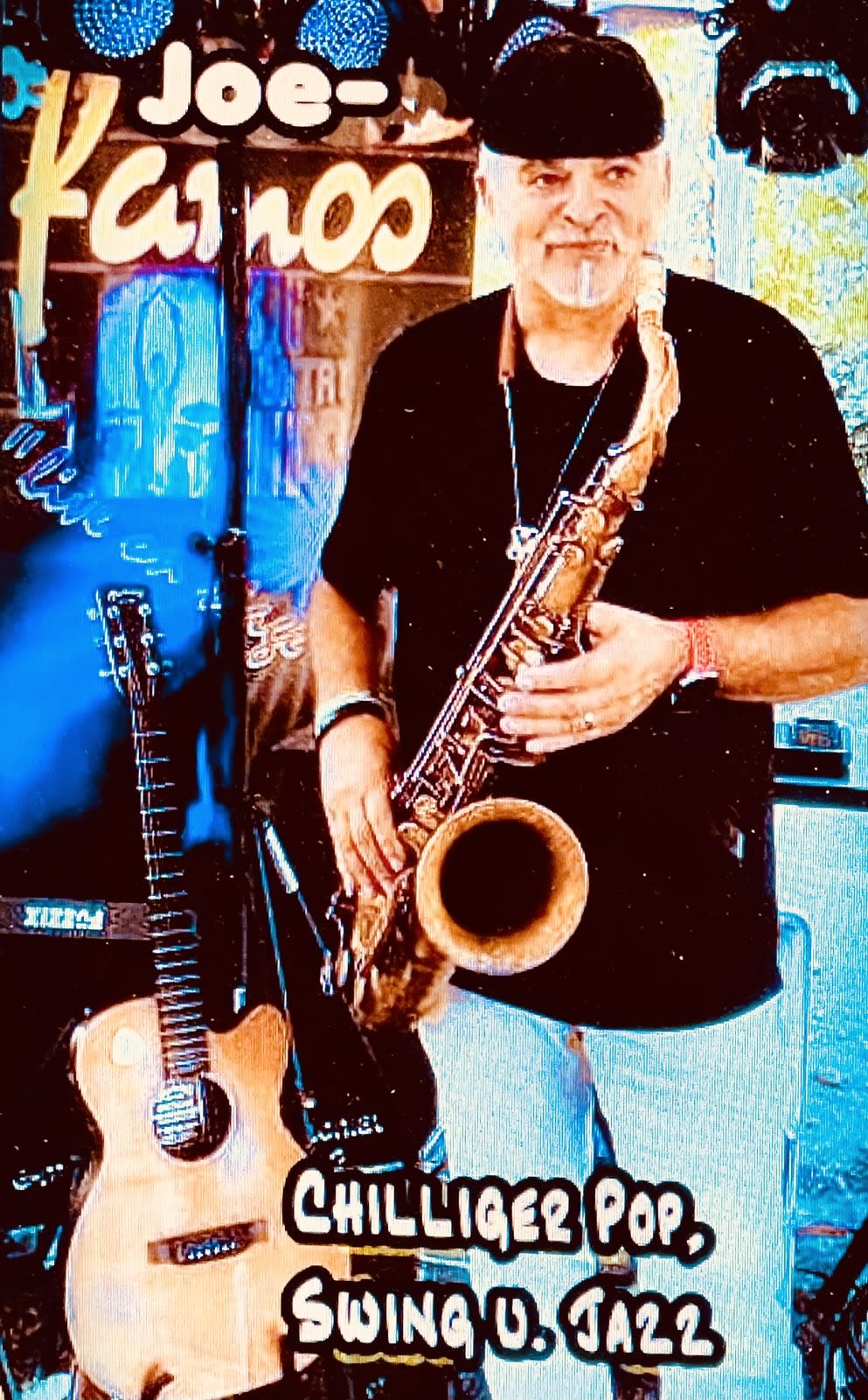 Ich spiele Gitarre, Saxophon, Querflöte u Harp und singe mehrsprachig.