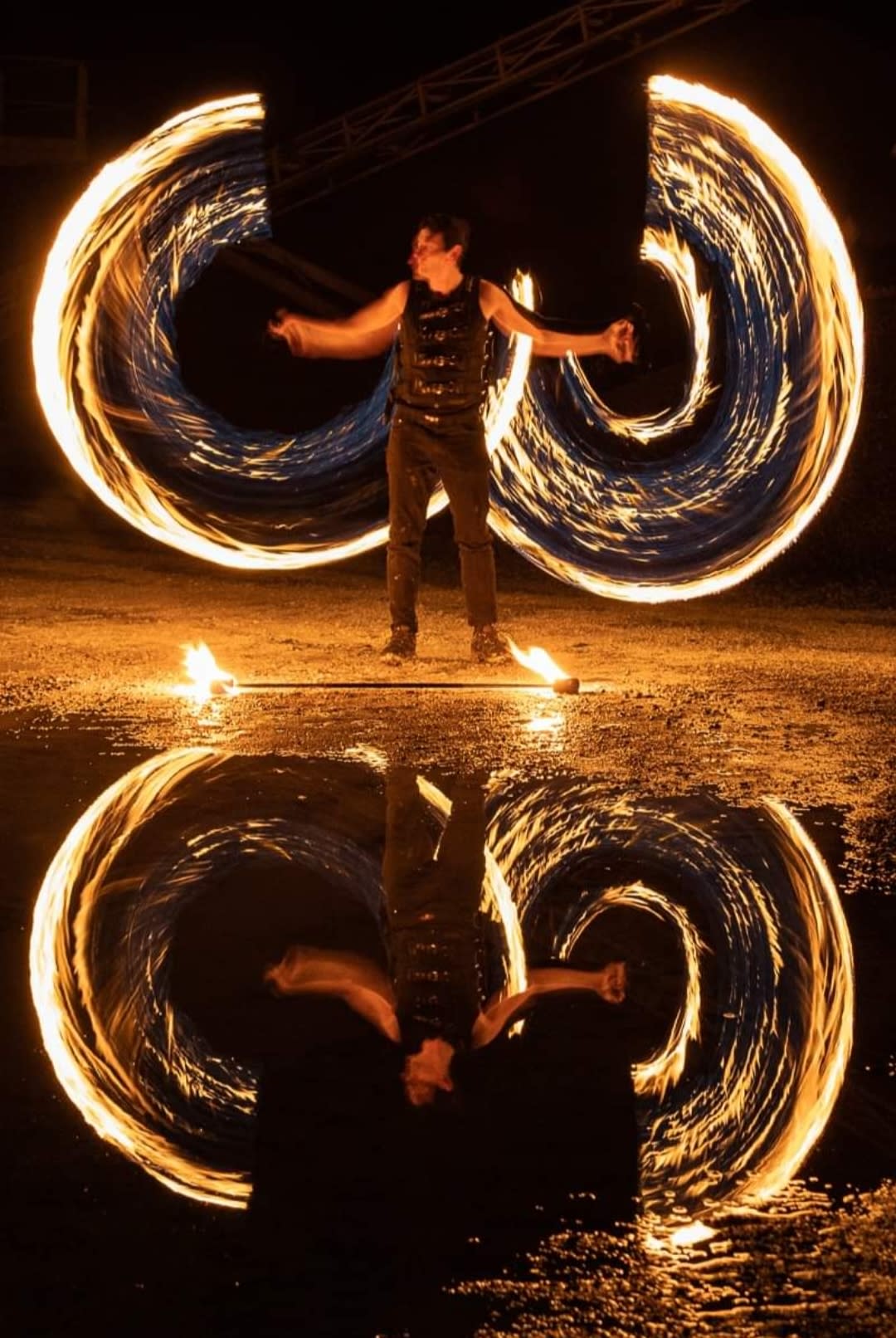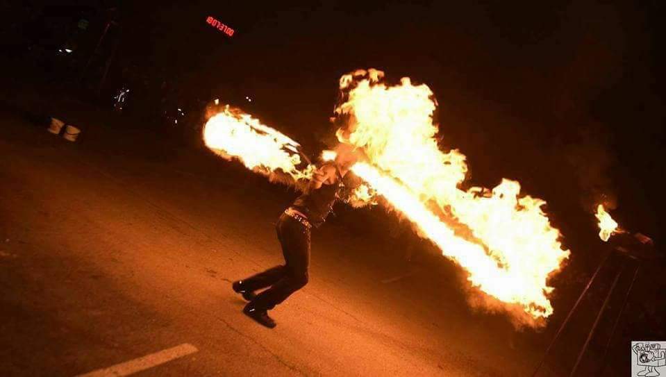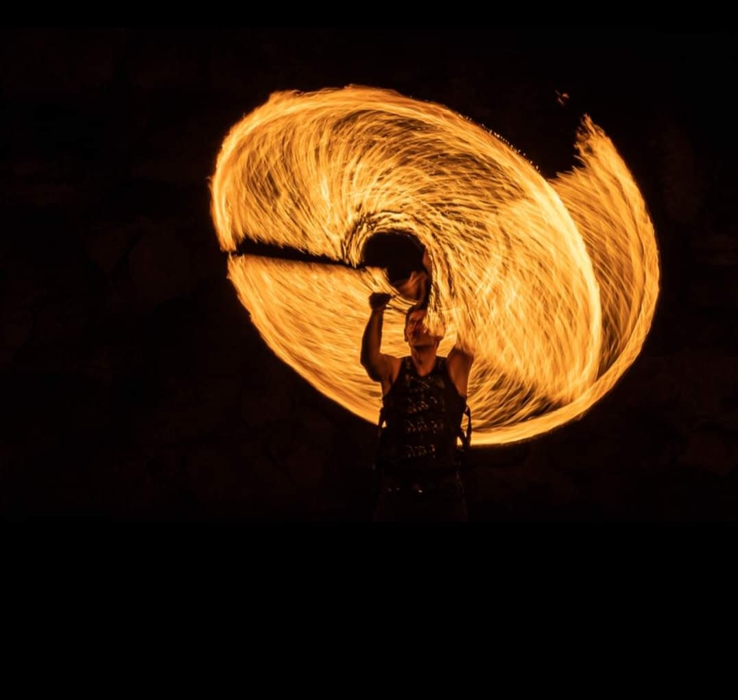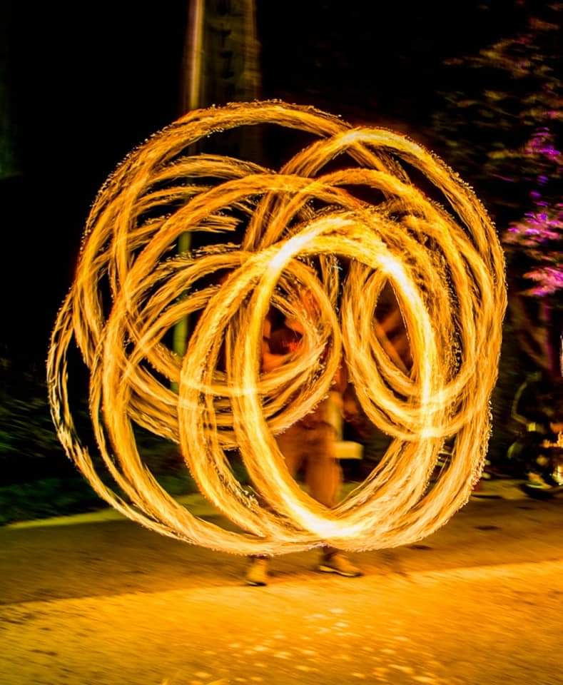Zu sehen sind z.B. Körperfeuer, brennender Langstab, Feuerschlucken, Feuerpoi, usw..
