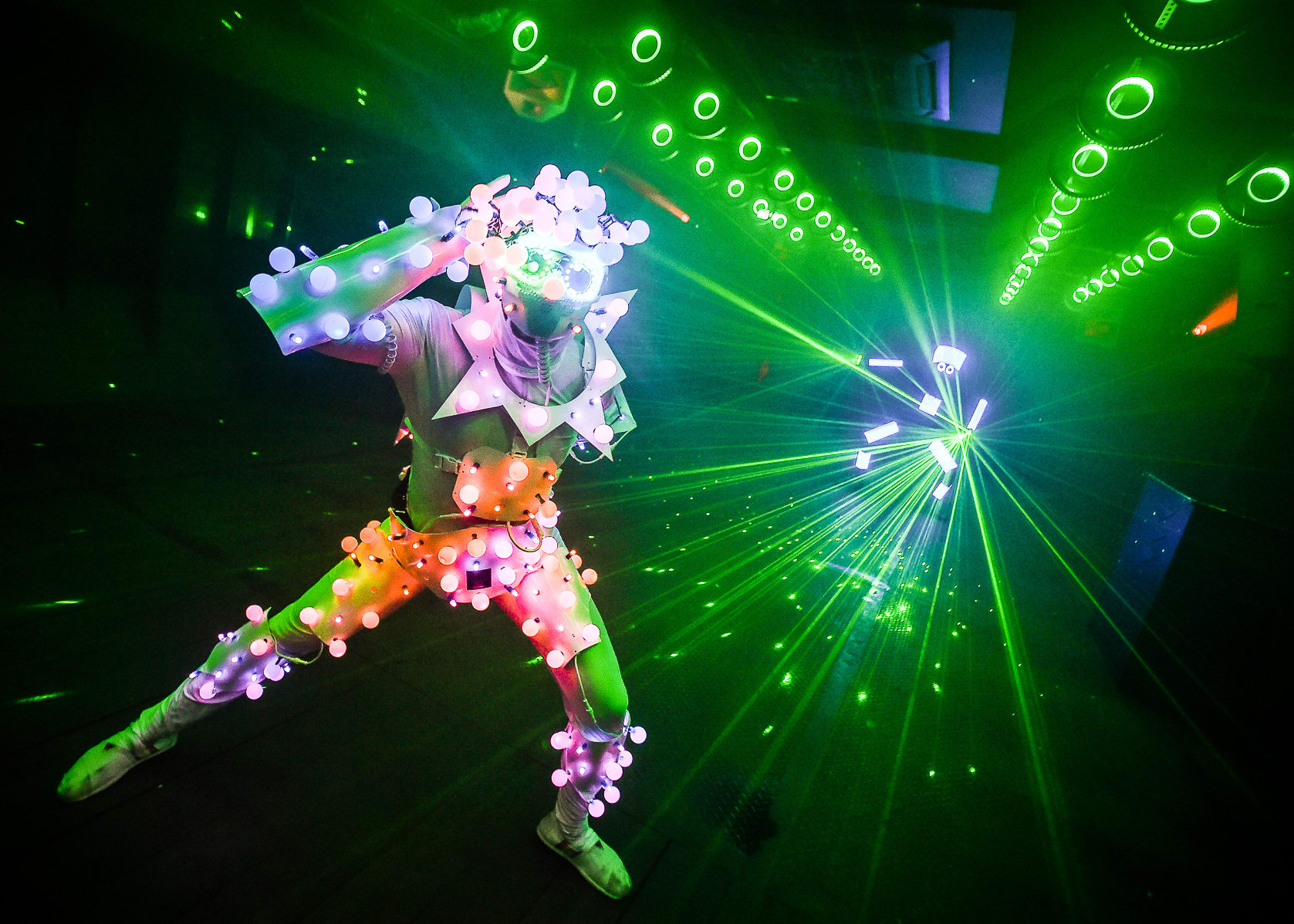 der LED-Kostüme, faszinieren mit Artistik,