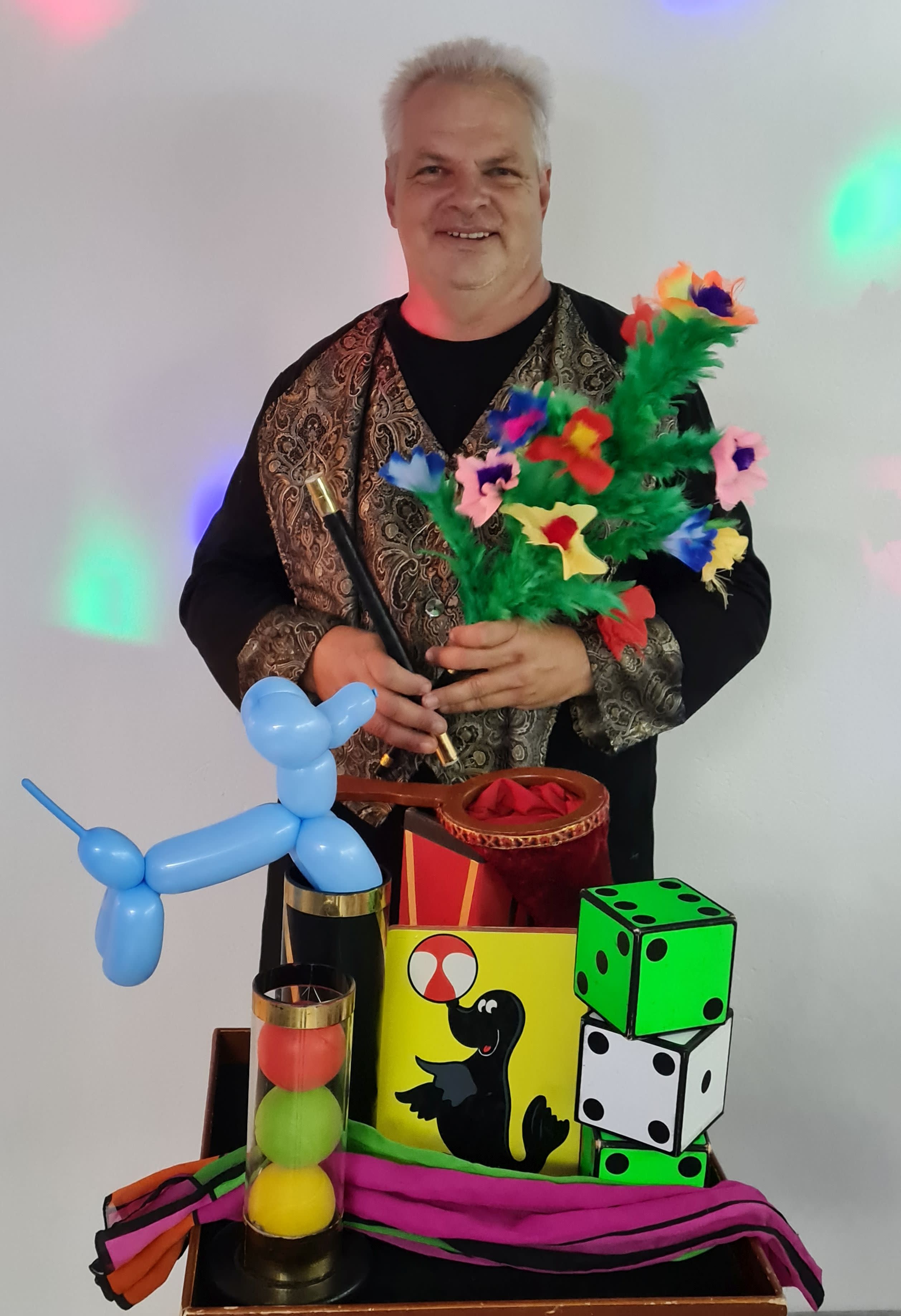 Andreas Buchsbaum, der seit 1984 Profizauberkünstler und Kinderanimator ist und den man in der Unterhaltungsbranche als Mr. Magic Junior kennt, wird 2-3 Stunden lang die Kinder mit Zauberei, Quiz - und Tanz- & Animationsspielen etc. und nicht zuletzt mit seinen allseits beliebten Modellierluftballons unterhalten.
